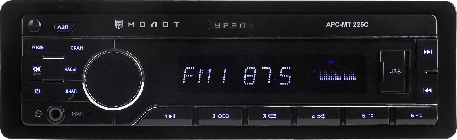 Автомагнитола Ural Молот АРС-МТ 225С 1DIN 4x180Вт v5.0 USB 2.0 AUX 2 (МОЛОТ АРС-МТ 225C)