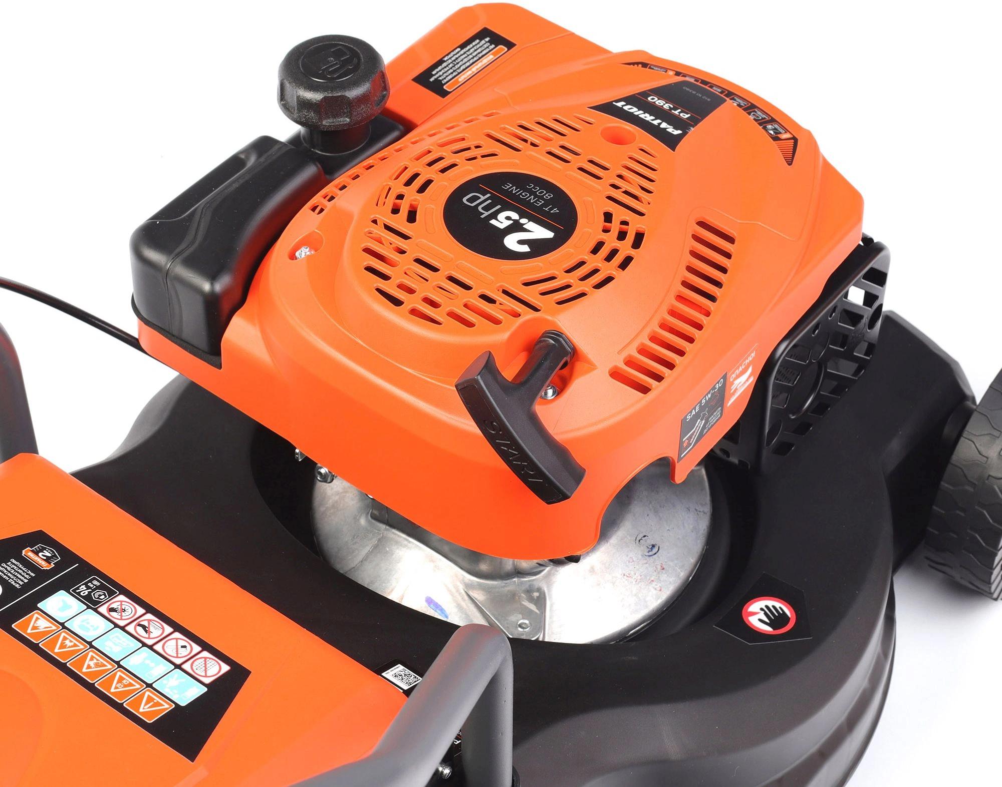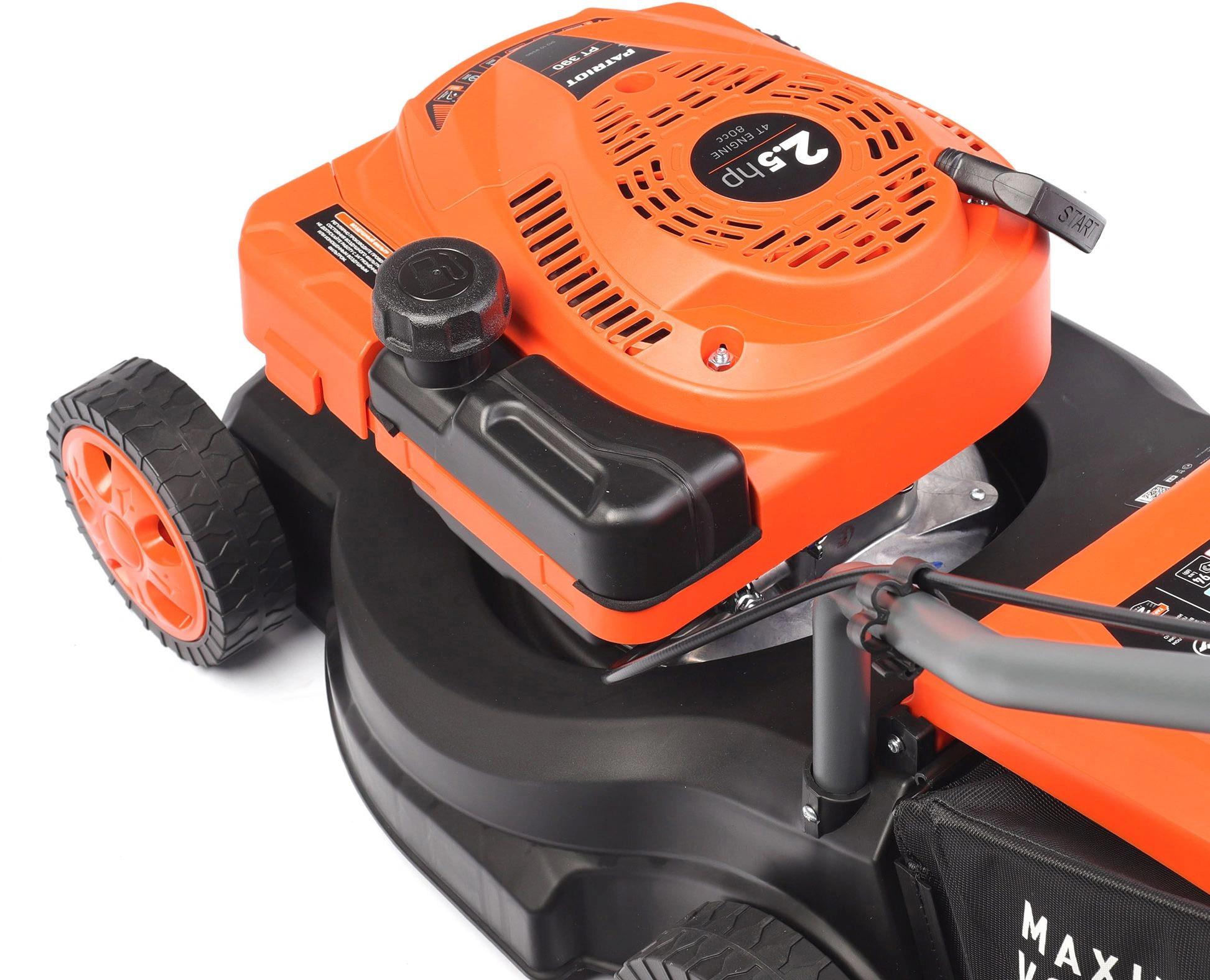 Газонокосилка с ножом; Комплект колес; Рукоятка верхняя; Рукоятка нижняя; Травосборник; Клипса крепления троса; Комплект болтов и саморезов; Свечной ключ, Овёртка. Инструкция по эксплуатации