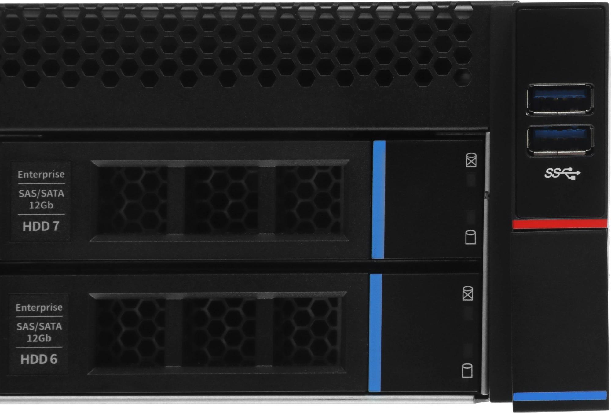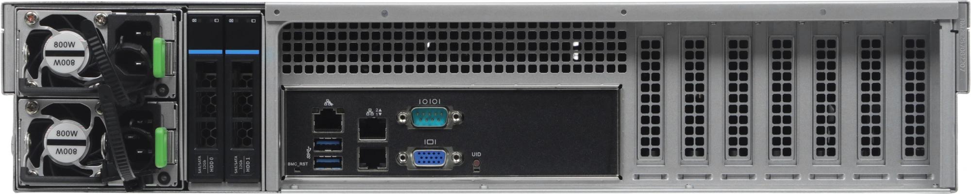 Пассивный backplane на 8 дисков. Raid контроллер встроен в чипсет. Для установки SAS дисков требуется установка контроллера LSI 9361-8i. Рельсы в комплекте.