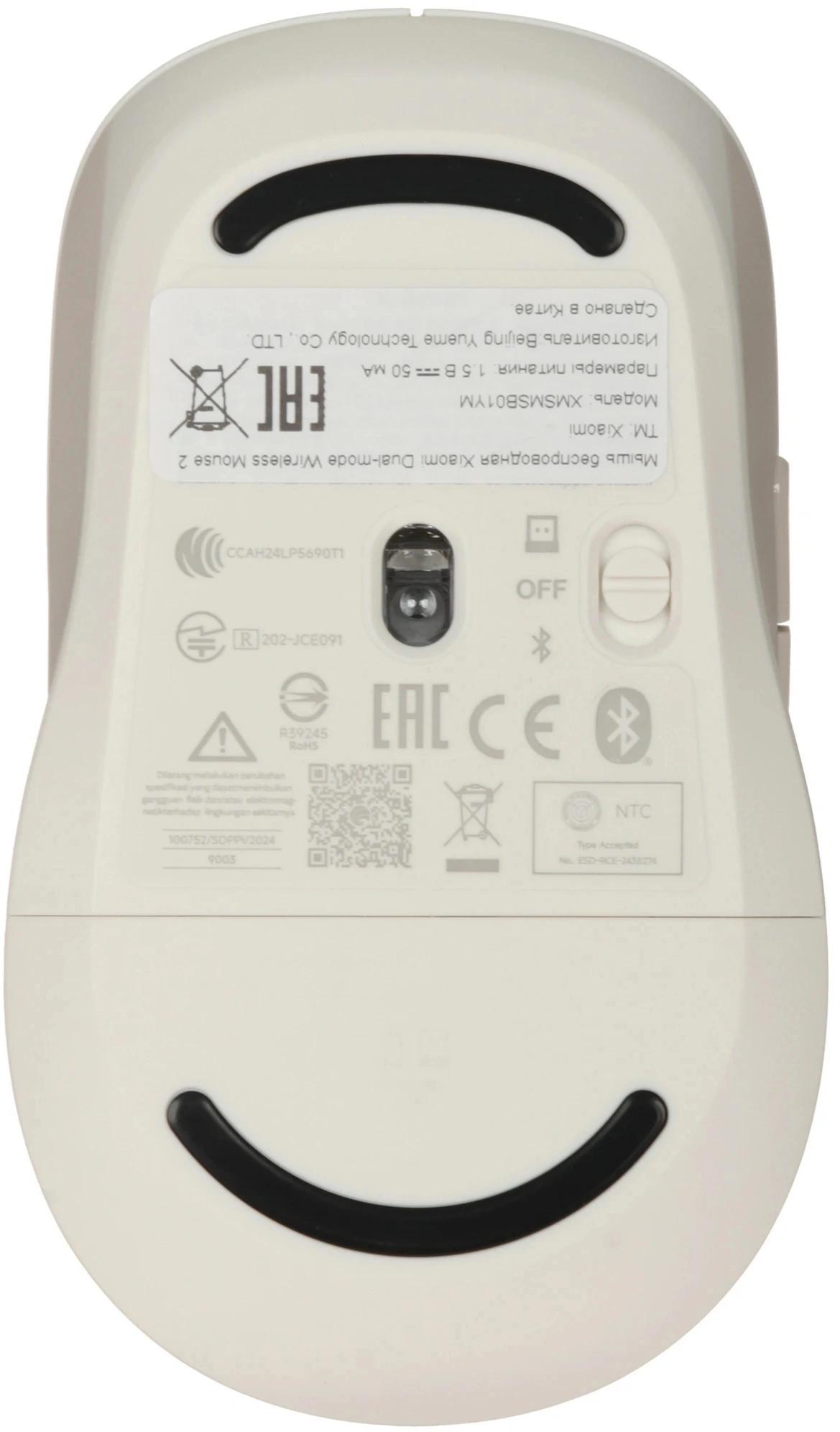 Мышь Xiaomi Dual-mode Wireless Mouse 2 белый оптическая 1200dpi silent беспров. BT/Radio USB для ноутбука 4but (BHR8849GL)