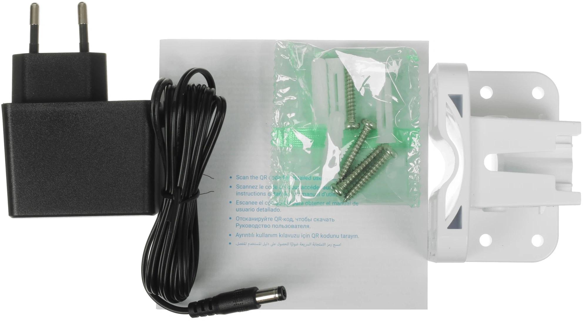Камера, Адаптер питания, Шаблон для сверления отверстий, Комплект винтов, Комплект гидроизоляции, Нормативная информация, Руководство по быстрой настройке