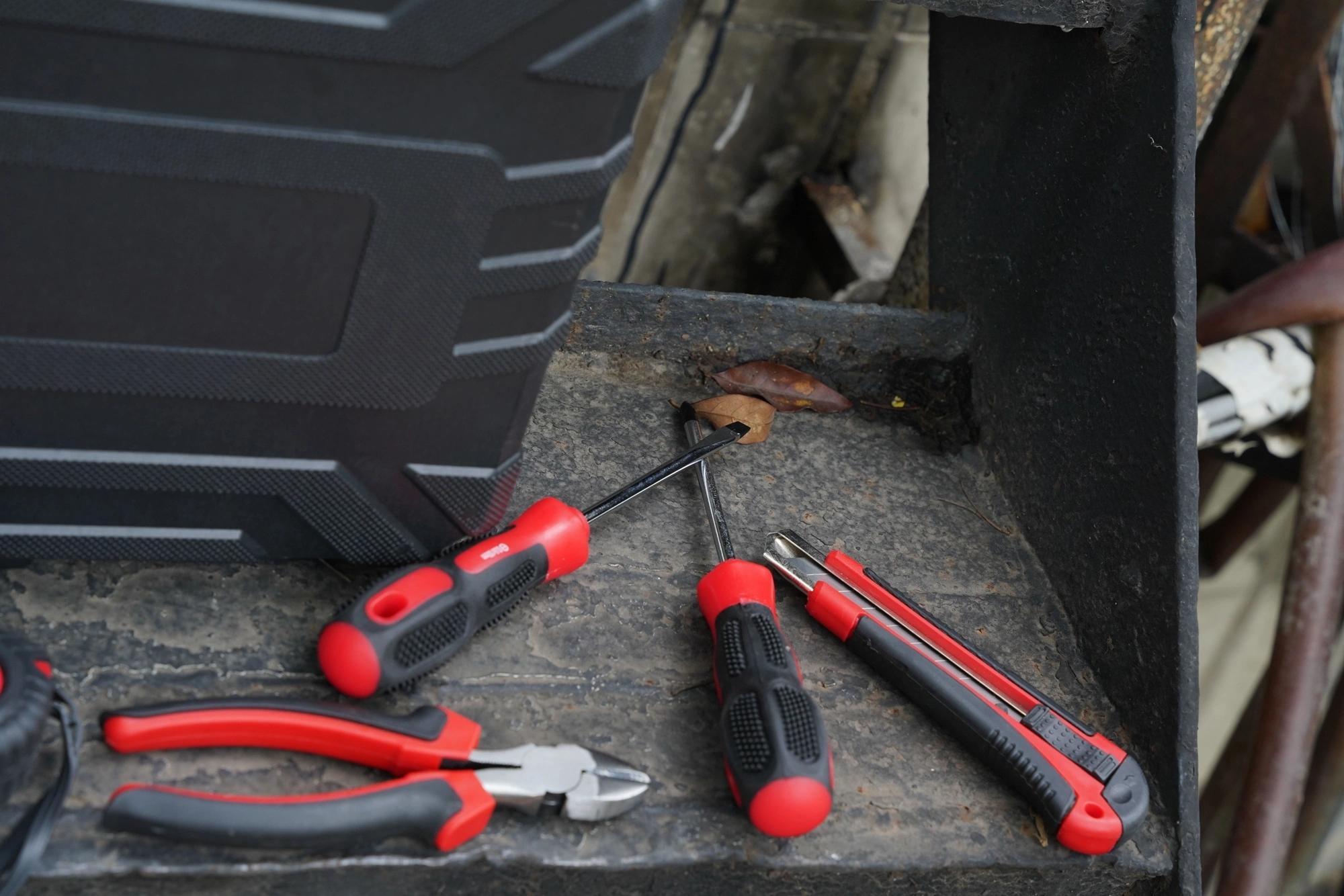 бокорезы, длинногубцы, ключ разводной, пассатижи, рулетка, трещотка