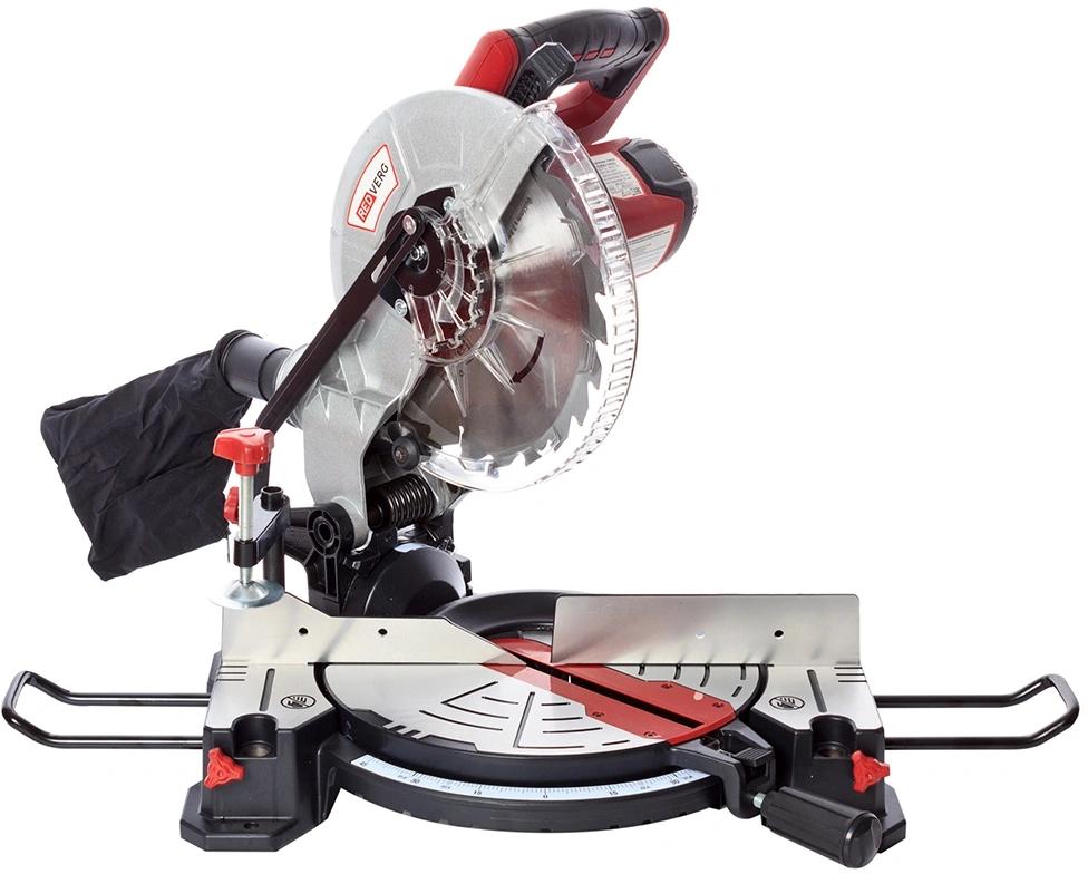 Торцовочная пила; пильный диск (установлен); зажим (струбцина); шестигранный ключ 6 мм.; мешок для пыли; ручка блокировки угла наклона; ручка блокировки; удлинители стола - 2 шт.; угольные щётки - 2 шт.; инструкция по эксплуатации; коробка (упаковка).