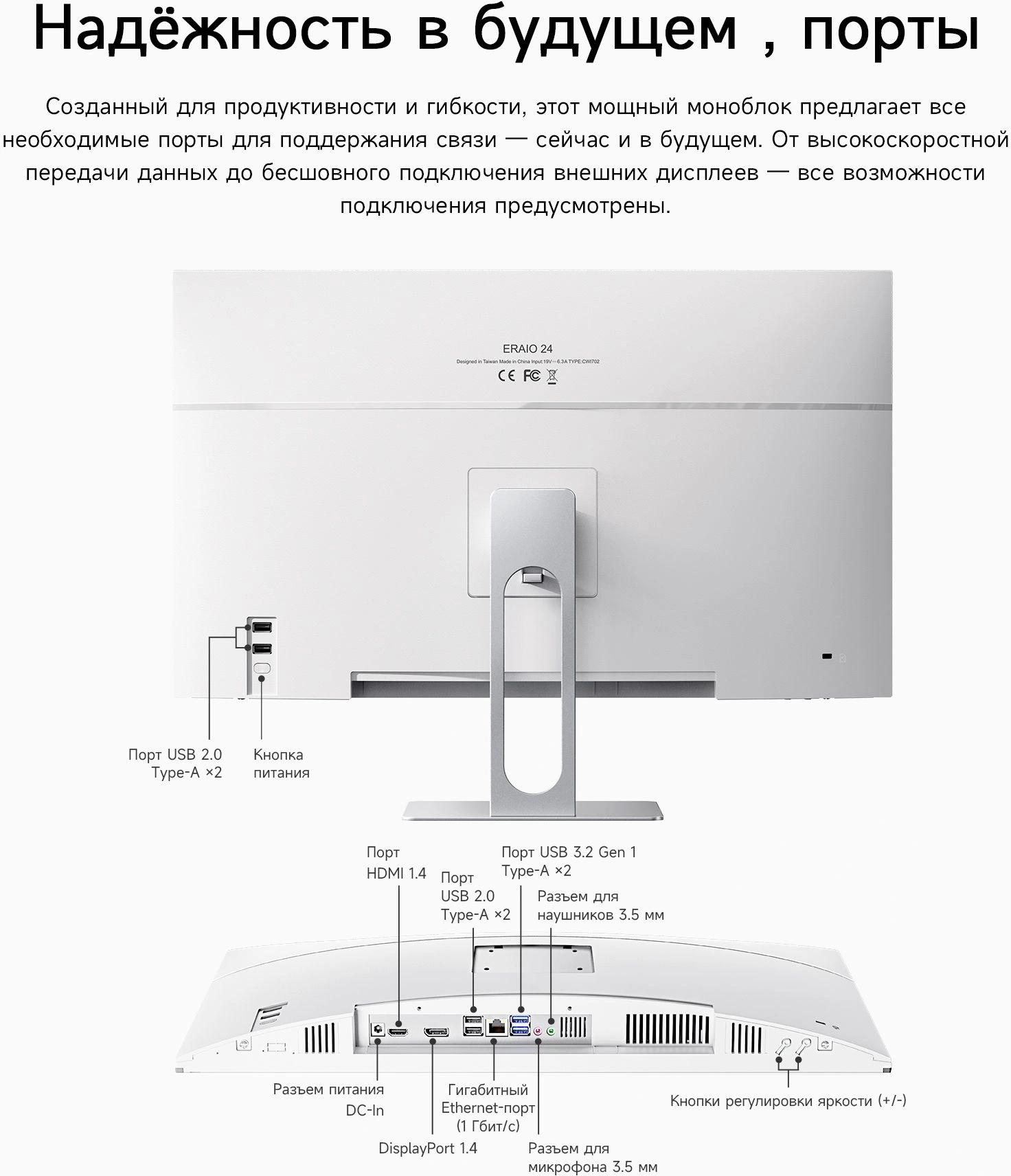 Кабель питания, клавиатура, мышь, адаптер питания, руководство пользователя