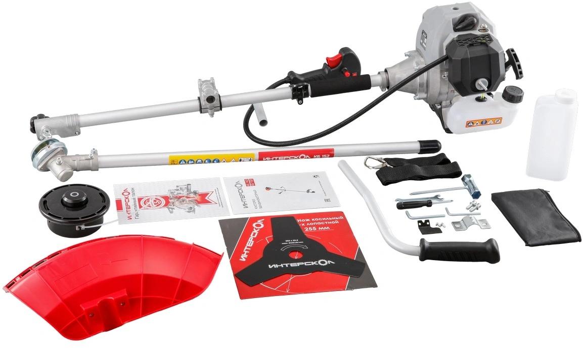 Кусторез, Инструкция по безопасности и Руководство по эксплуатации, Гарантийный талон, Рукоятка двух составная велосипедного типа, Нож 3-лезвийный, Комплект крепежа для ножа, Кожух защитный ножа, Комплект крепежа кожуха защитного, Головка режущая с леской, Ремень разгрузочный