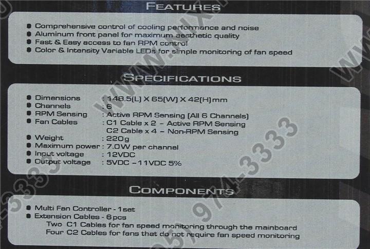 | Описание | Монтируемое в 5.25" отсек устройство для изменения скорости вентиляторов. |