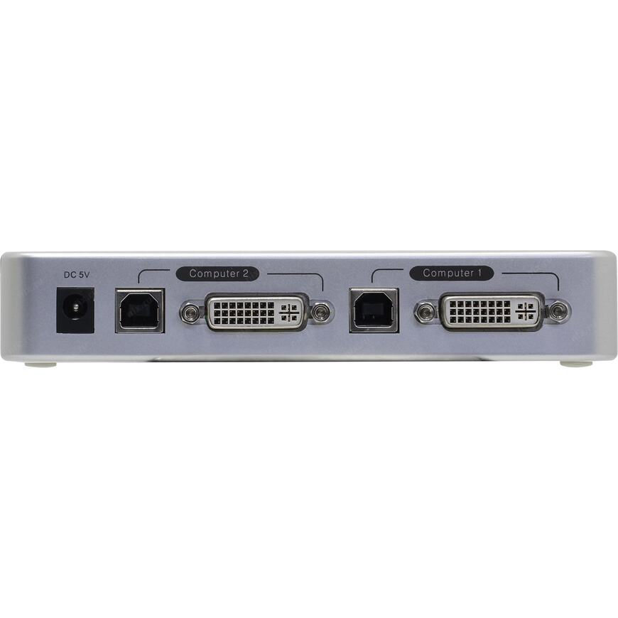 | Описание | Переключатель KVM; позволяет управлять 2 компьютерами с помощью 1 набора клавиатура USB, мышь USB, монитор DVI, колонки и микрофон |