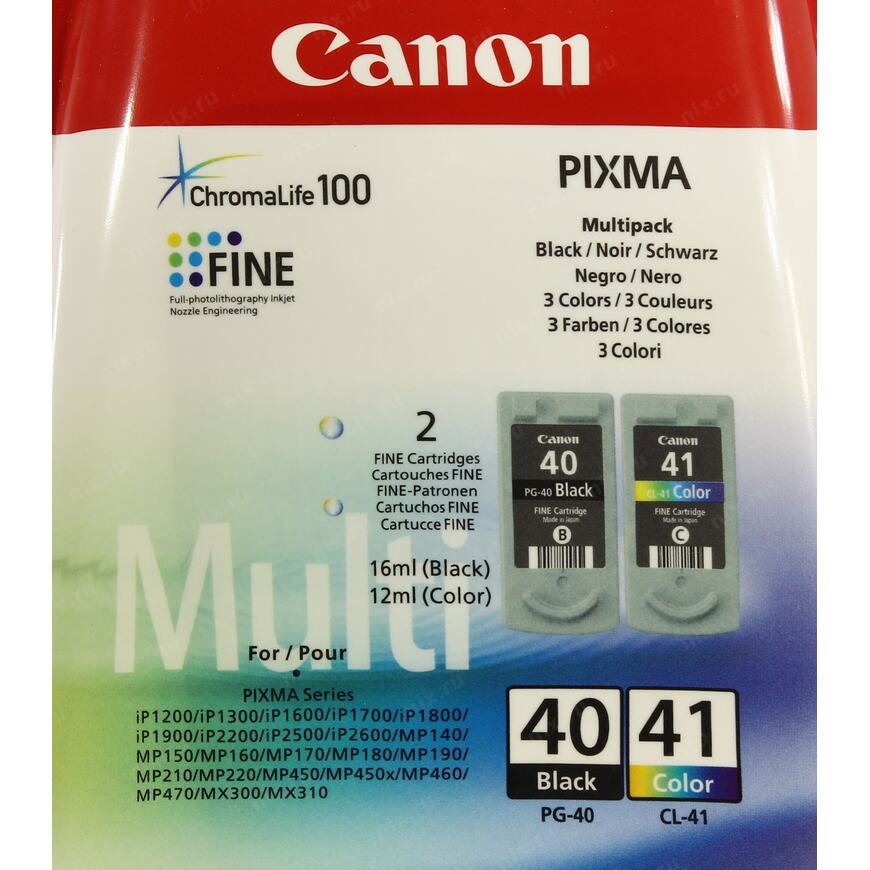 PG-40 (с черными пигментными чернилами, экономичный), CL-41 (трехцветный)
