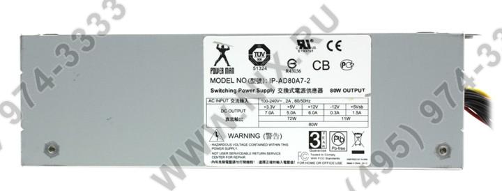 | Максимальная нагрузка | +3.3V - 7A, +5V - 5A, +12V - 6A, +5VSB - 1.5A, 12V - 0.3A; Комбинированная нагрузка: +3.3V & +5V & +12V 72 Вт |