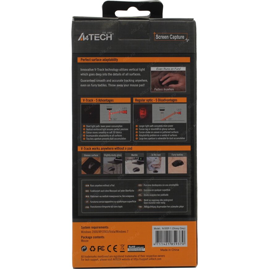 | Кол-во кнопок мыши | 4, включая кнопку "Двойной клик" и колесико-кнопку. Правая кнопка может быть запрограммирована на выполнение до 16 различных функций |