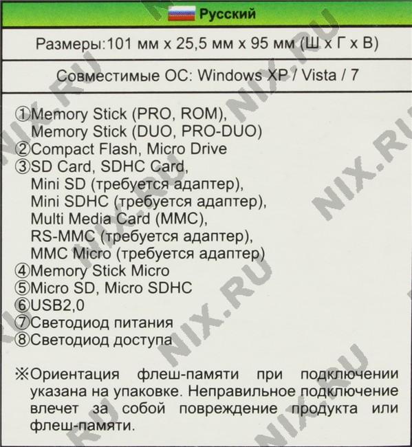 | Слоты для карт памяти | CF Type II, CF Type I, SDHC, SD, microSDHC, microSD, MMC, MS Micro (M2), MS Pro Duo, MS Duo, MS Pro, MS, USB Flash Drive |