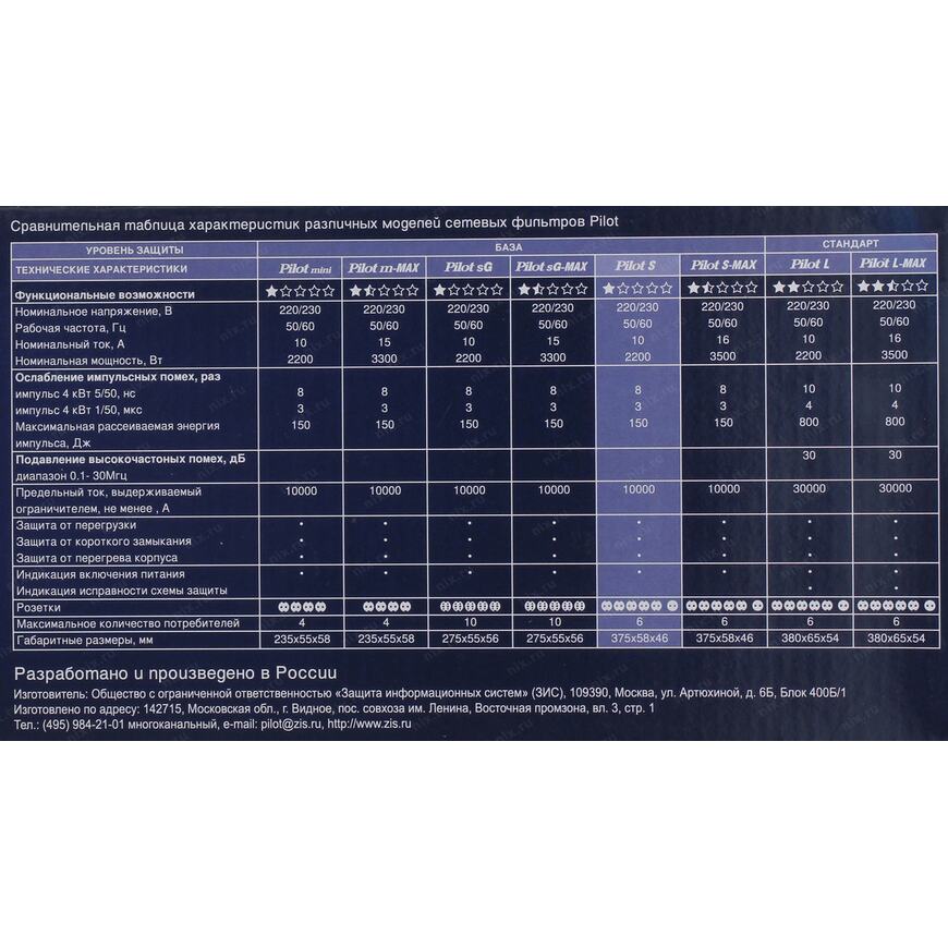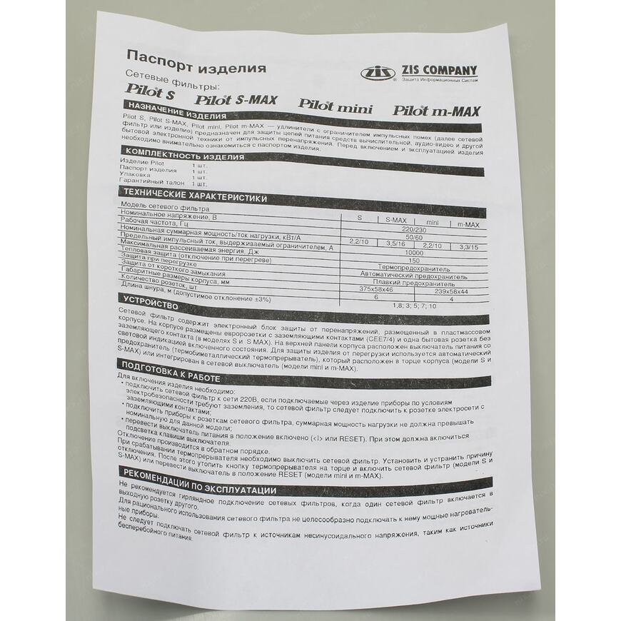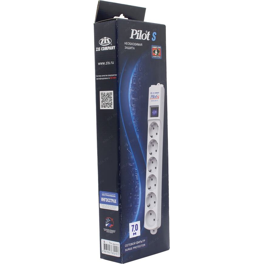 Сетевой фильтр 2.2 кВт ZIS Pilot-S 5 розеток евростандарт с заземлением 1 розетка без заземляющего контакта Серый 7 метров