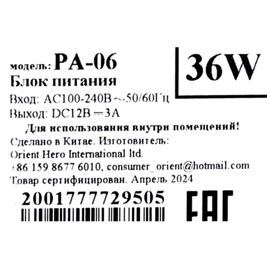 Защита от перегрузки; Ток срабатывания защиты - 3.8 ~ 4.1 А; задержка срабатывания защиты - 20 мс; КПД более 85%; Уровень пульсации напряжения менее 180 мВ
