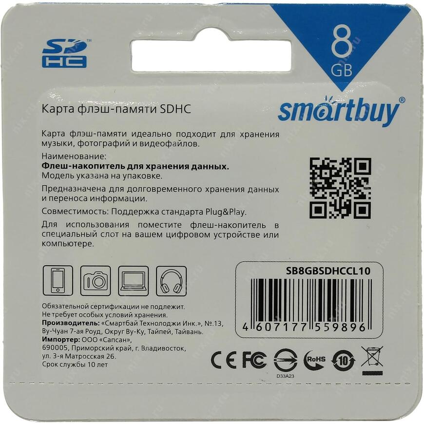 Карта памяти SmartBuy SB8GBSDHCCL10 SDHC Class 10 8 ГБ