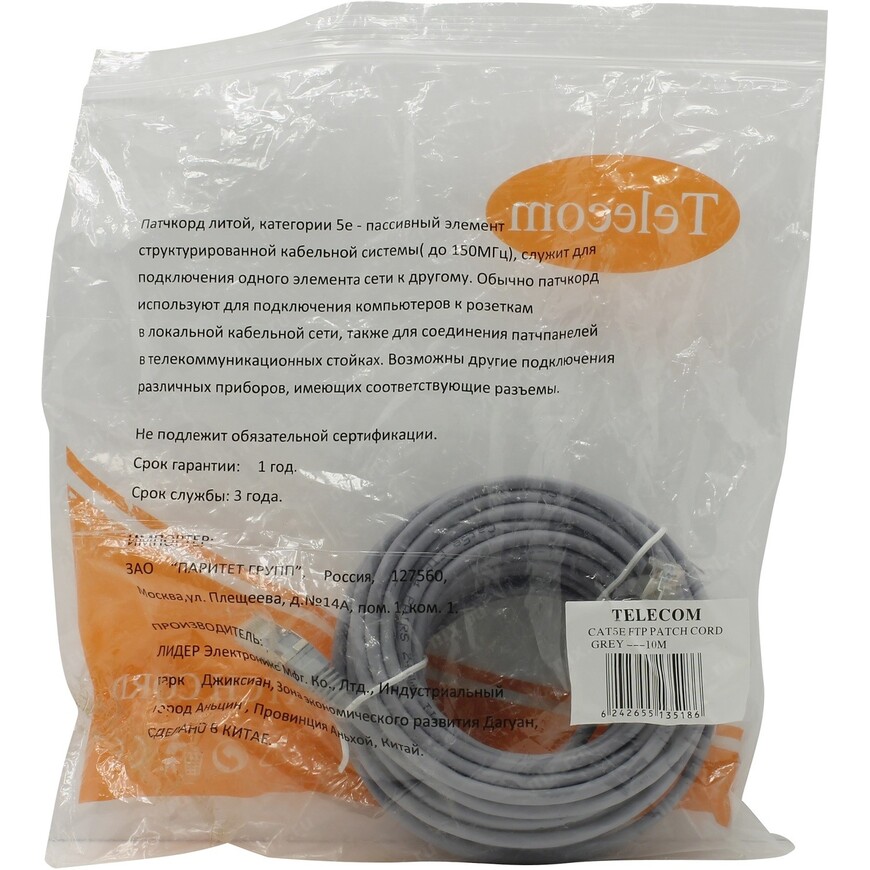 Патч-корд экранированный FTP Cat 5e служит для помехозащищенного соединения компьютера и розетки, двух коммутационных патч-панелей, активного оборудования и патч-панели и т. д.