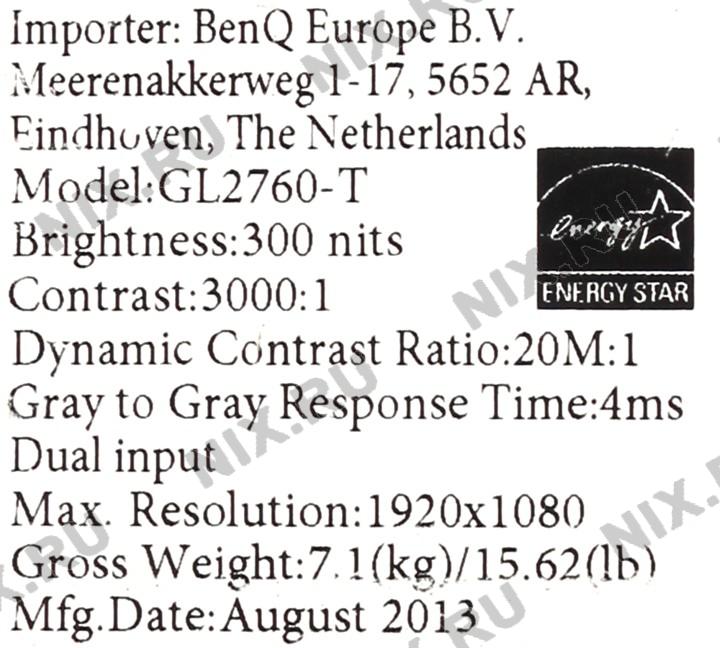 | Потребление энергии | 31 Вт в Eco-режиме; 0.3 Вт в режиме ожидания |