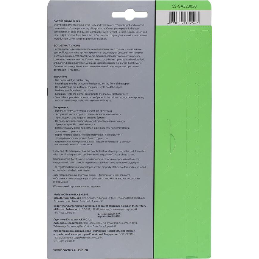 Фотобумага Cactus CS-GA523050, A5 (210 x 148 мм), 50 листов