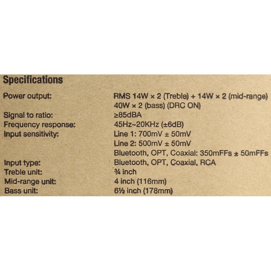 | Разъемы | Аудиовход 2xRCA, коаксиальный вход, оптический вход, разъем для подключения сабвуфера |