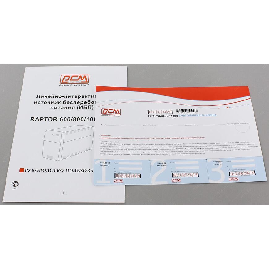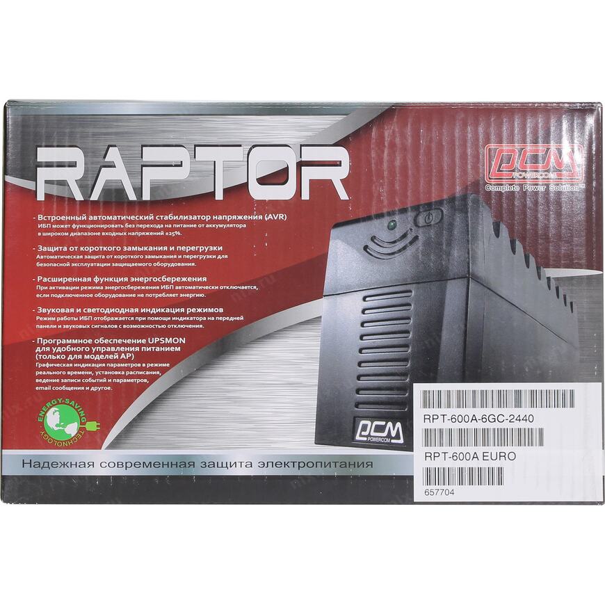 Источник бесперебойного питания Powercom Raptor, Line-Interactive, 600VA / 360W, Tower, Schuko
