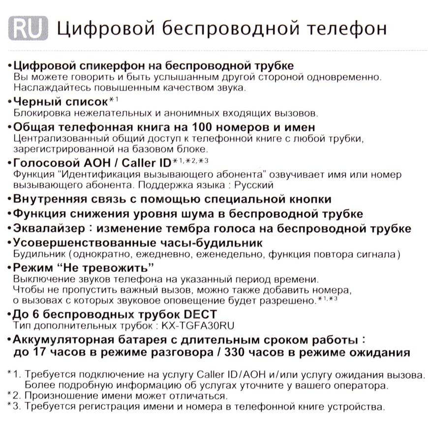 | Повторный набор, оргтехника | Есть; 5 номеров на беспроводной трубке; 10 номеров на базе |