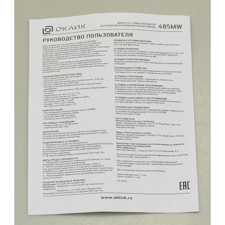 | Горячая линия производителя |