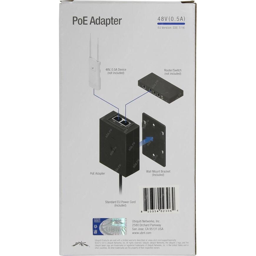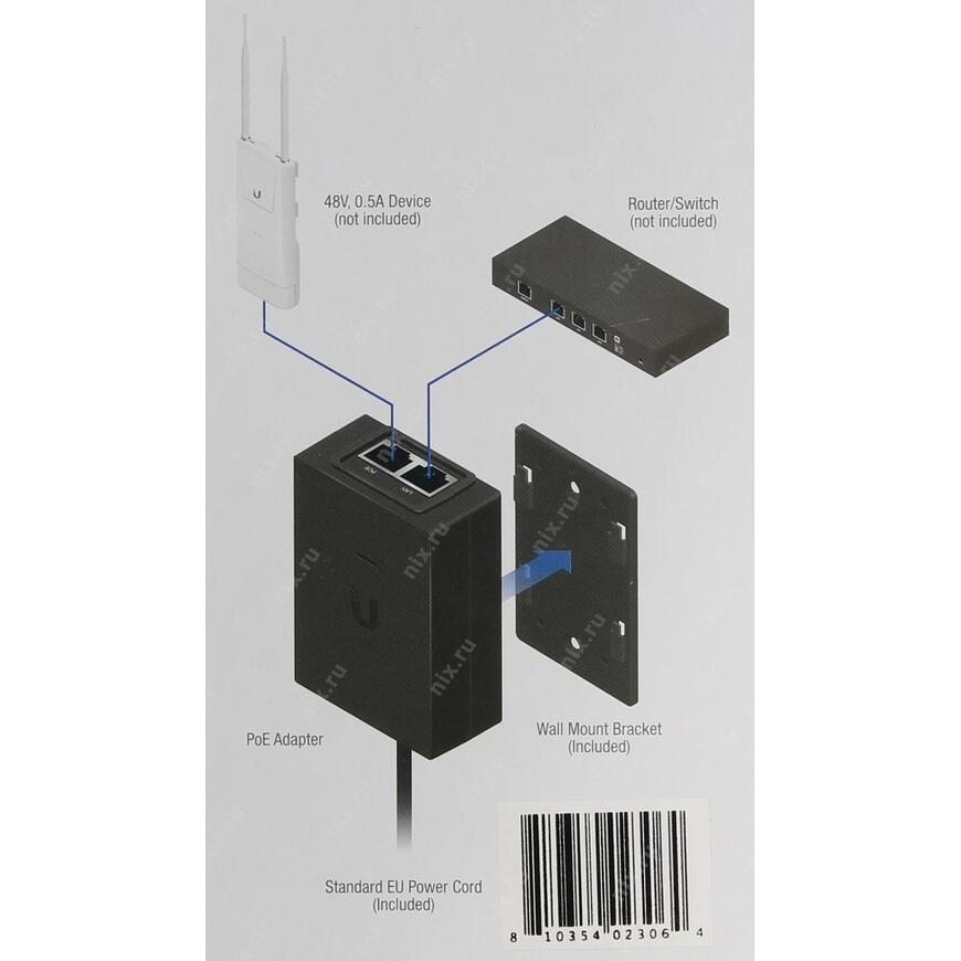 | Описание | PoE адаптер для устройств Ubiquity, напряжение питания на выходе 48В 0.5А, распиновка: 4, 5 +; 7, 8 - |