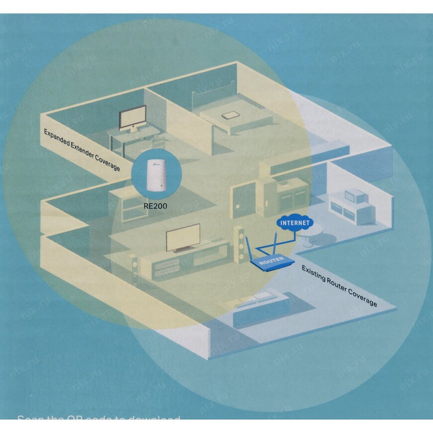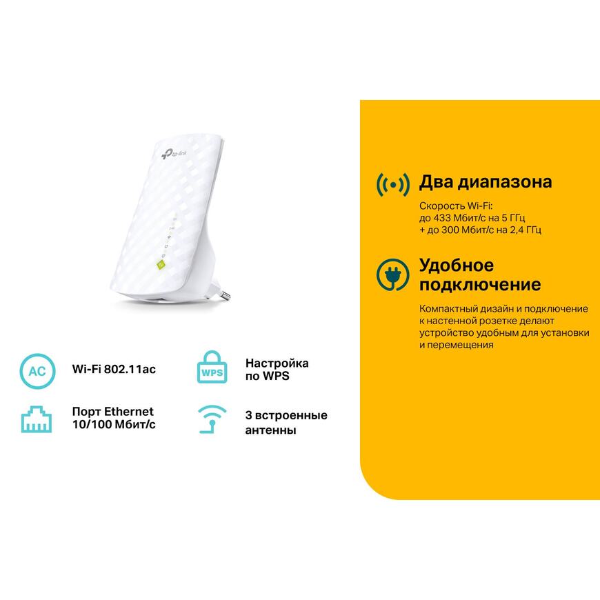 Двухдиапазонный усилитель беспроводного сигнала, усиливает сигнал Wi-Fi в недоступных ранее местах, где невозможна прокладка кабеля. Совместим с беспроводными роутерами и устройствами стандартов 802.11b/g/n и 802.11ac.