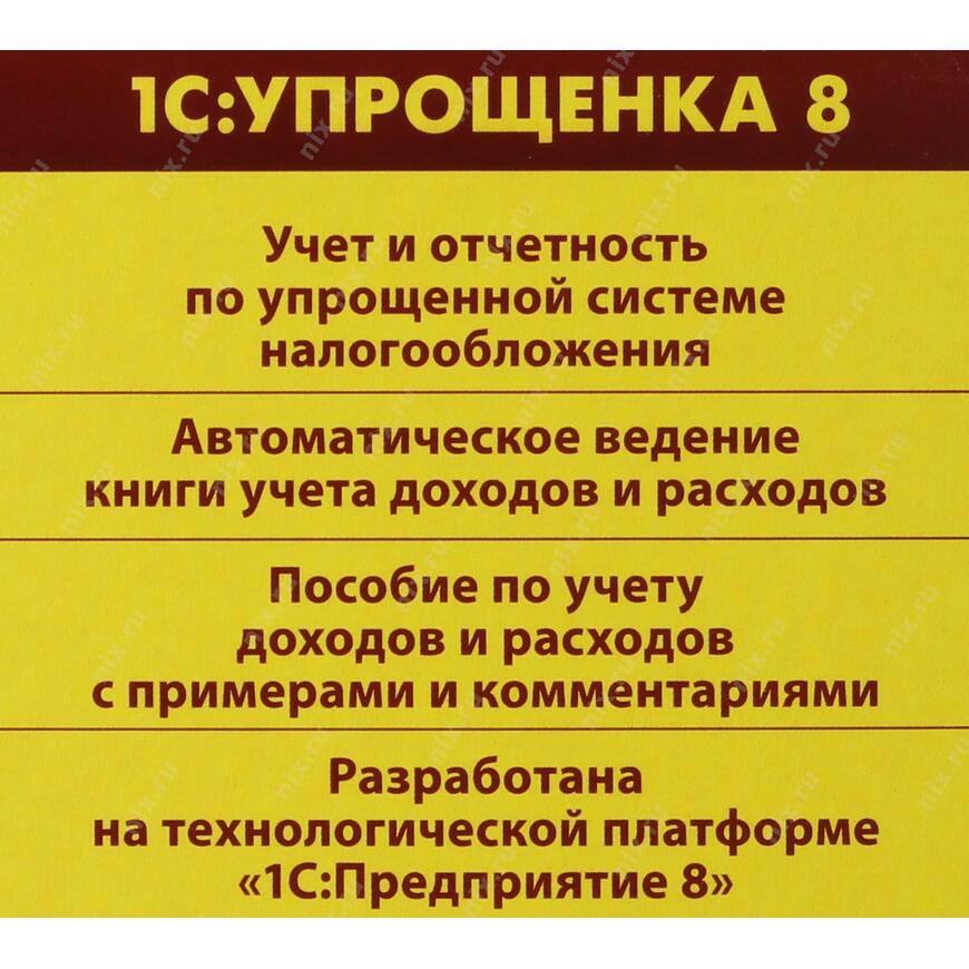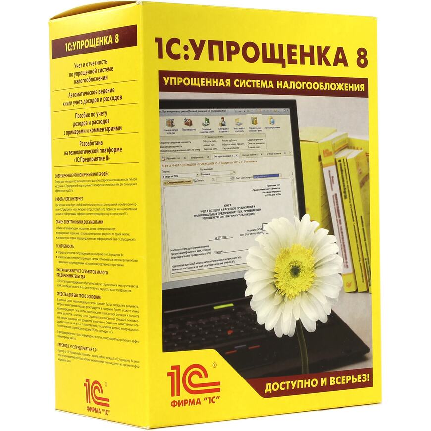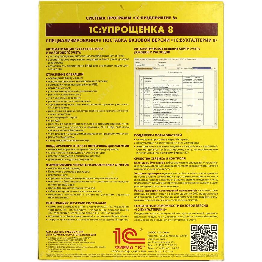 | Совместимость | В "1С:Упрощенке 8" предусмотрена возможность совместного использования с прикладными решениями "Управление торговлей" и "Зарплата и Управление Персоналом", "1С:Управление небольшой фирмой", также созданными на платформе "1С:Предприятие 8" |
