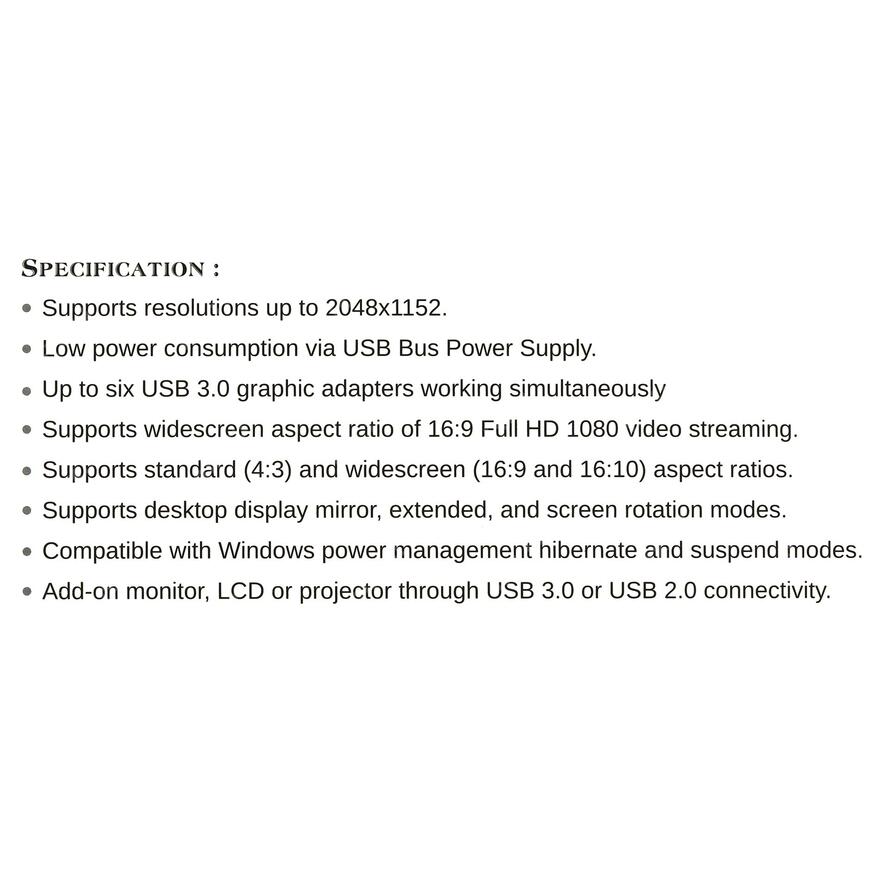 | Описание | Устройство позволяет подключить к компьютеру дополнительный монитор или проектор через порт USB 3.0 |