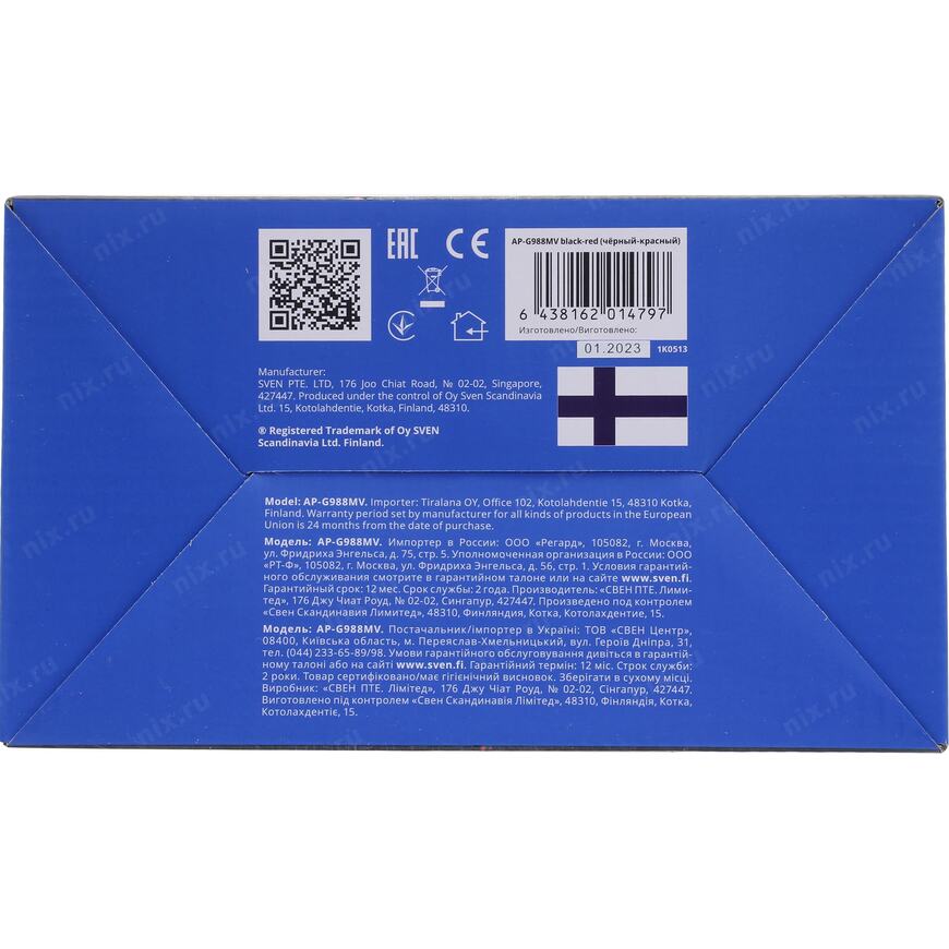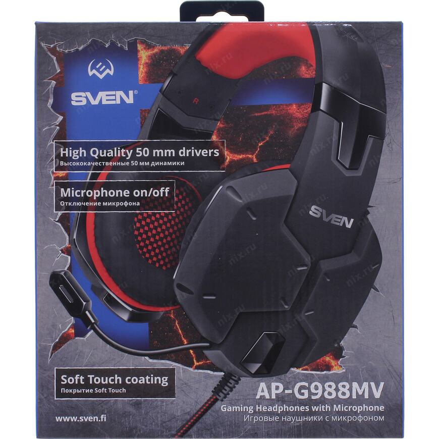 Игровые стереонаушники с микрофоном SVEN AP-G988MV, черный-красный