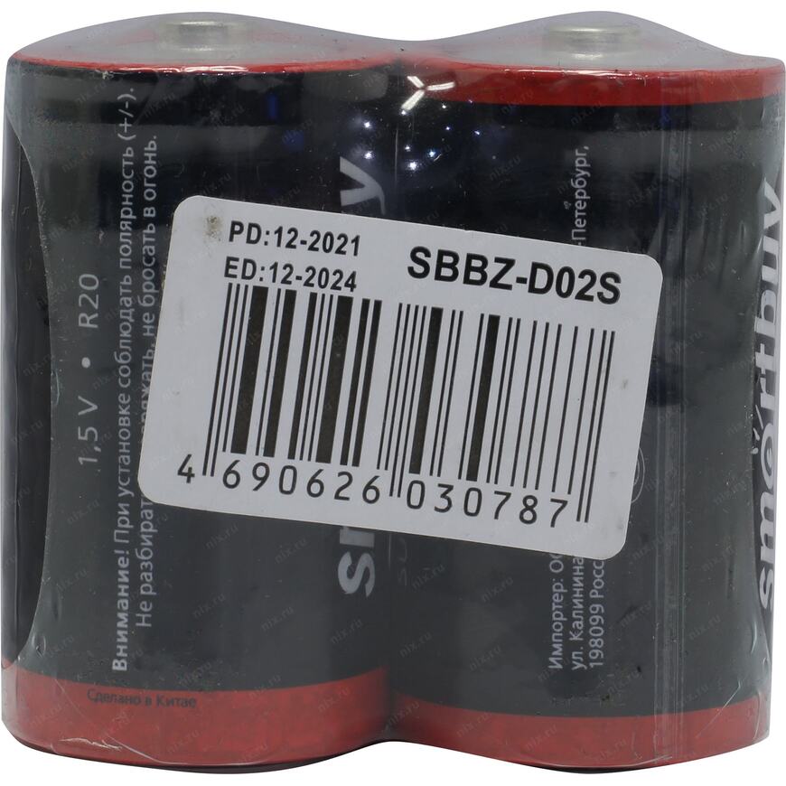 Батарейки D SmartBuy Super Heavy Duty R20/2S 2 шт.