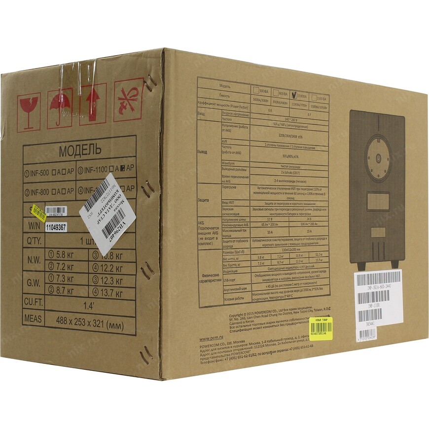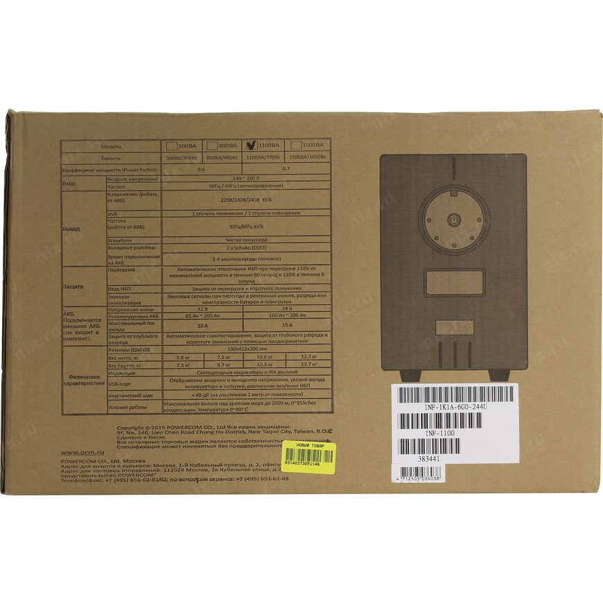 Источник бесперебойного питания Powercom Источник бесперебойного питания Powercom Infinity, Line-Interactive, 1100VA / 750W, Tower, Schuko, USB, подкл. доп. батарей