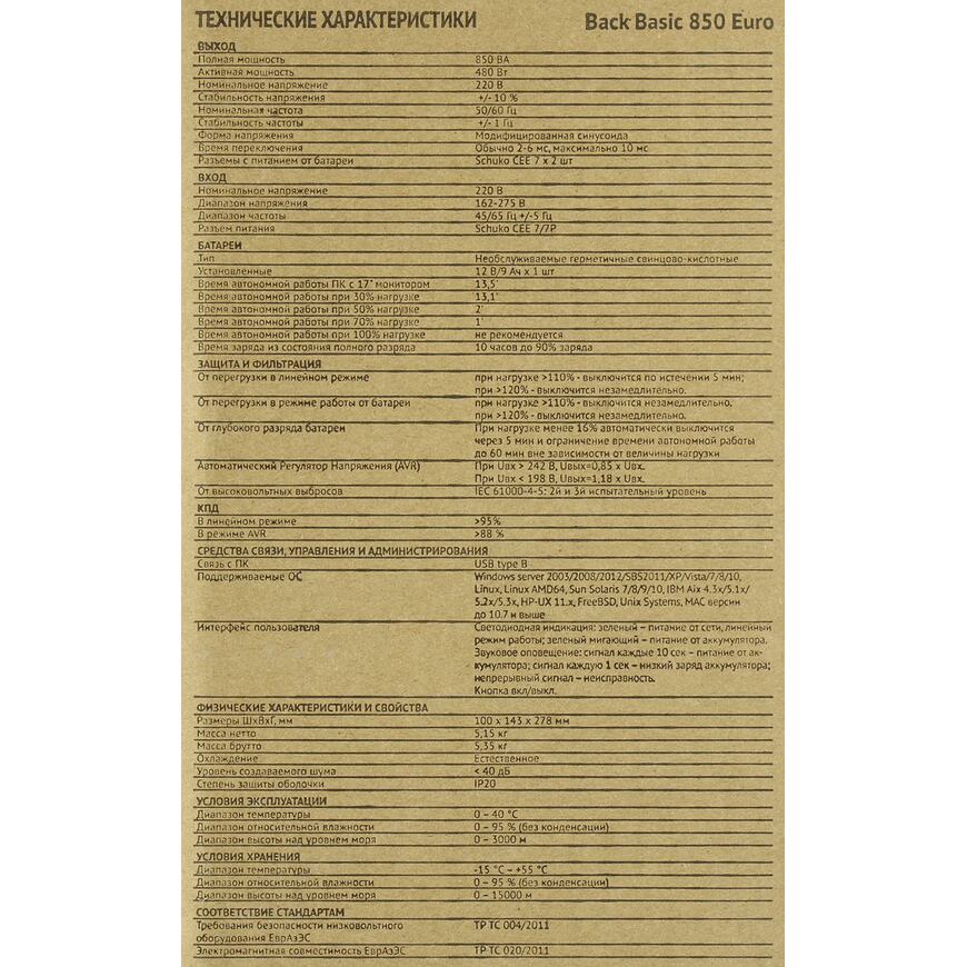 | Кол-во розеток с батарейной поддержкой | 2 CEE 7/4(7) (Евровилка) |