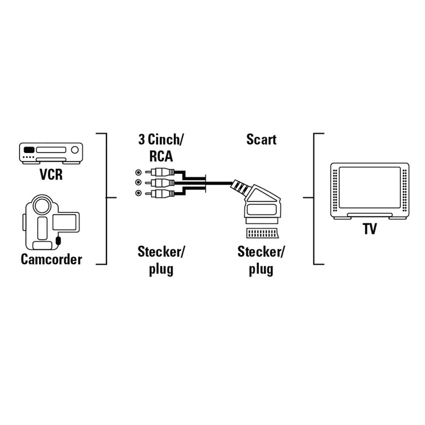 Кабель для подключения телевизора с разъемом SCART к видеокамере или видеоплееру с выходом 3xRCA