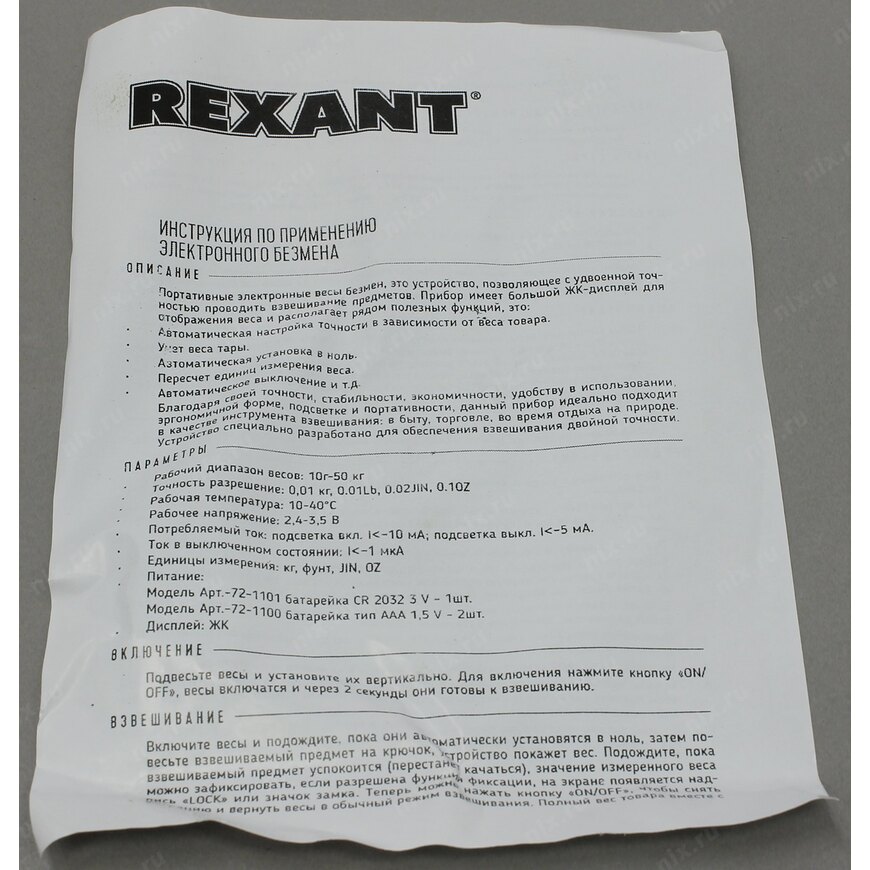| Описание | Ручные электронные весы, безмен, взвешивают от 10 грамм до 50 кг. Автоматическое отключение. |
