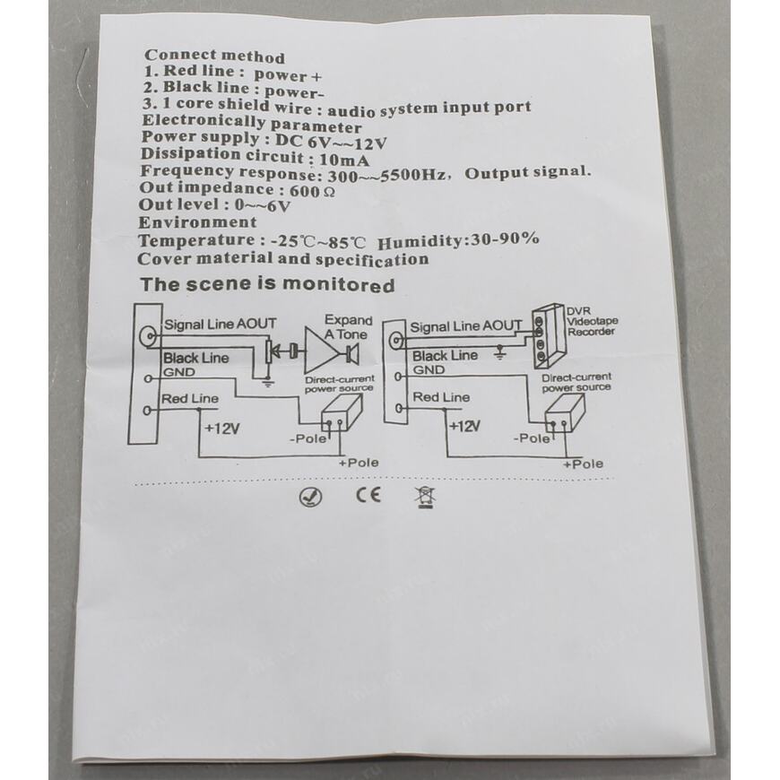 Высокочувствительный активный микрофон для аналоговых систем видеонаблюдения с акустической площадью до 100 м2, в купольном корпусе, с автоматической регулировкой усиления (АРУ)