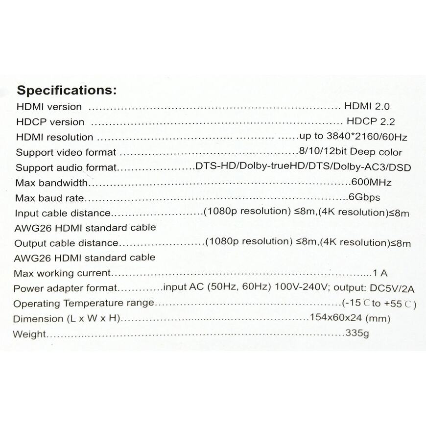 | Порты | Вход HDMI, 2 выхода HDMI |