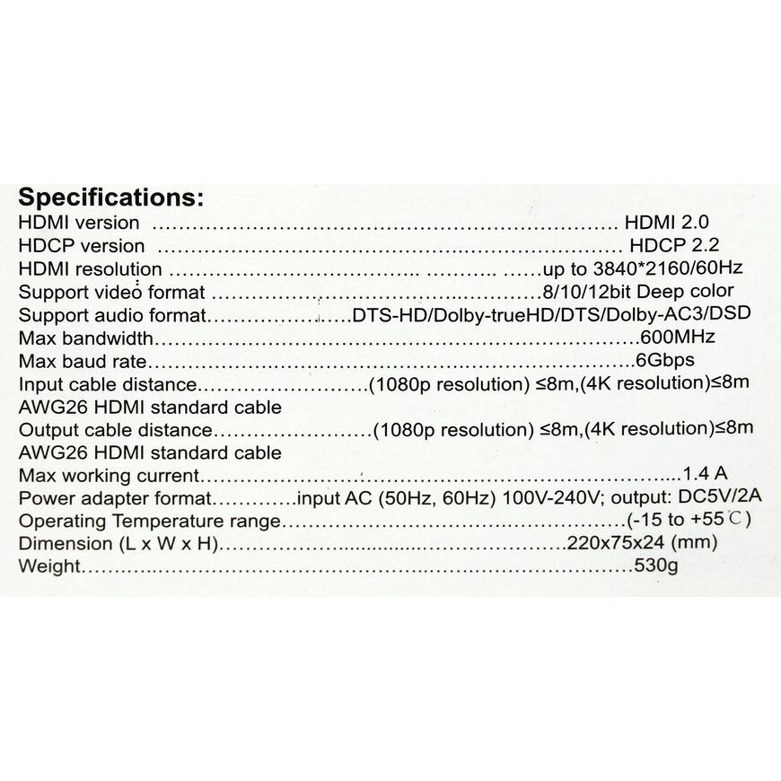 | Порты | Вход HDMI, 4 выхода HDMI |
