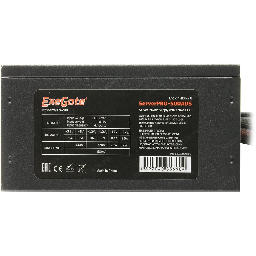 | Модель блока питания | ExeGate ServerPRO-500ADS |