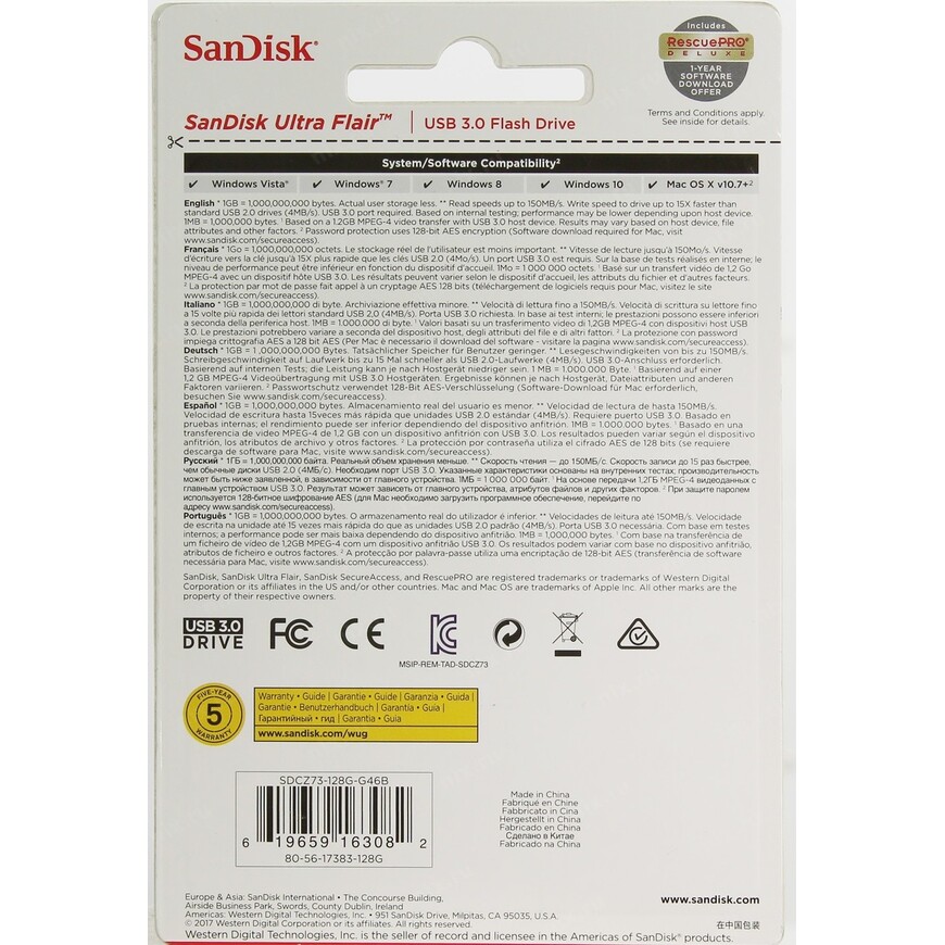 | ПО в комплекте | SanDisk RescuePRO |