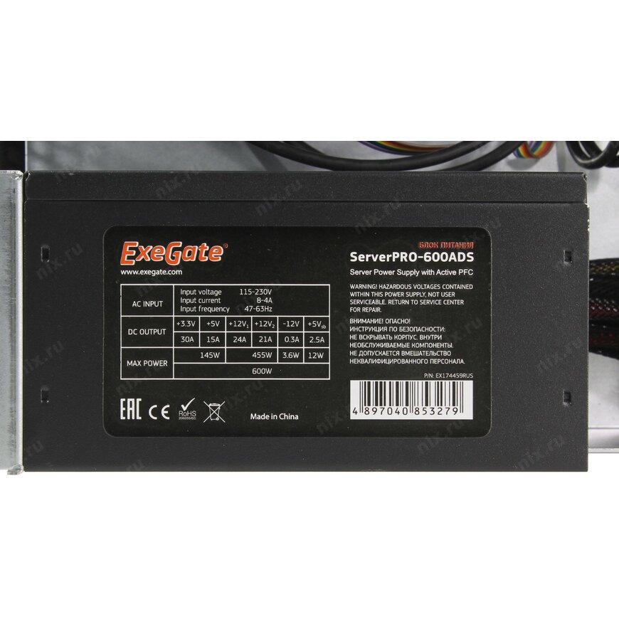 | Модель блока питания | ServerPRO-600ADS |