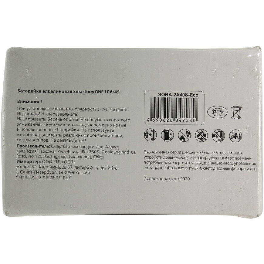 Батарейки AA SmartBuy One LR6\/4S ECO alkaline 40 шт.