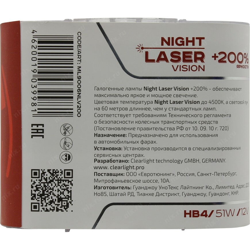 | Описание | Галогеновая лампа ближнего и дальнего света, даёт на 200% больше света, в сравнении с обычными галогеновыми лампами, а световой луч длиннее на 60 метров |