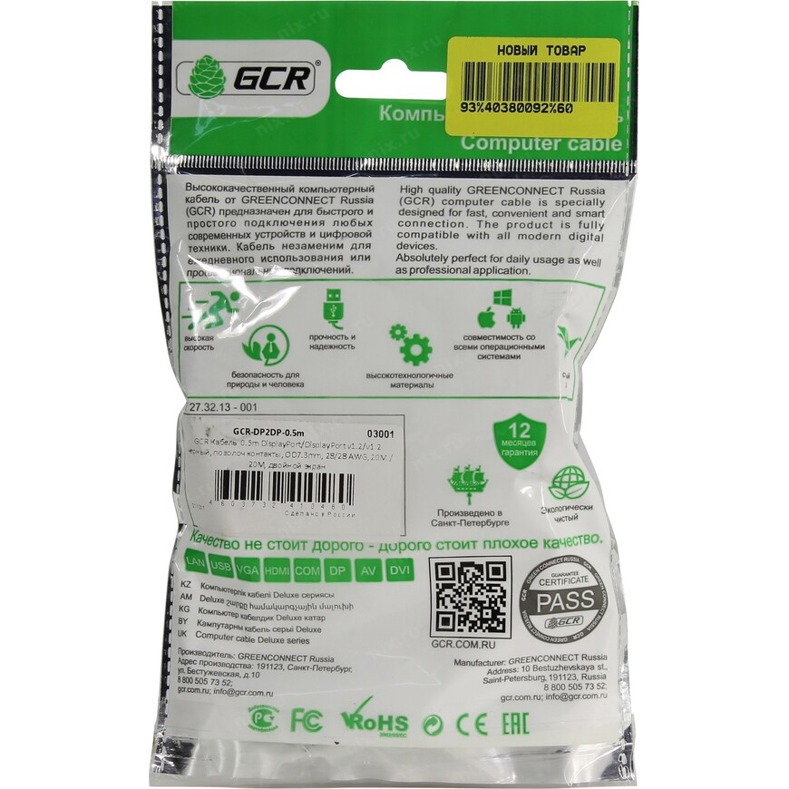 Кабель DisplayPort < -> DisplayPort Greenconnect GCR-DP2DP-0.5m 0.5 метра