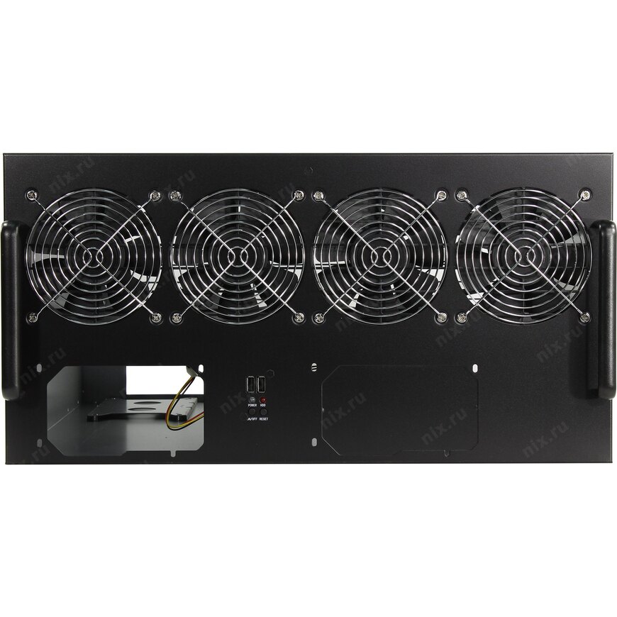 | Описание | Корпус, адаптированный для использования с множеством видеокарт. Например, для добычи криптовалют. |