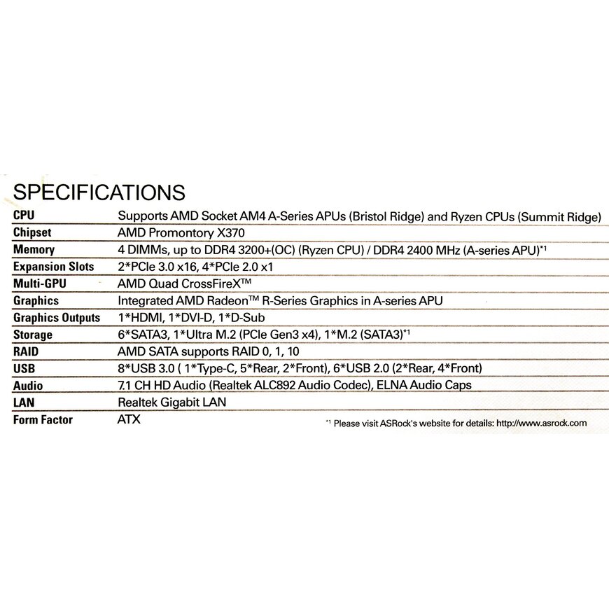 | Количество разъемов PCI Express 16x | 2 слота 16x PCI-E 3.0 работают в режиме 16-4 при установке Summit Ridge или Pinnacle Ridge или 8-2 при установке процессора Ryzen. При установке процессора AMD 7-го поколения PCI-E работают в режиме 8-2. |