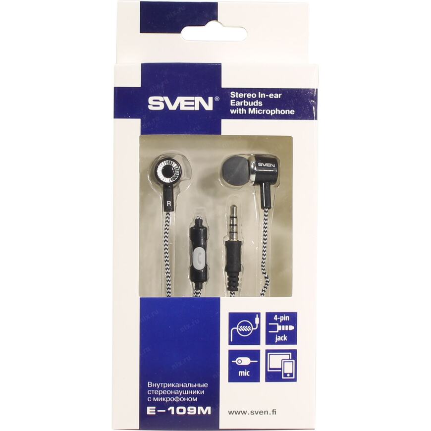 Гарнитура Sven E-109M функциональное решение для тех, кто не может жить без музыки ни минуты. Гарнитура имеет разъем mini-jack 3,5 мм (4 pin), поэтому совместимы с большинством современных моделей портативных проигрывателей и мультимедийных устройств.