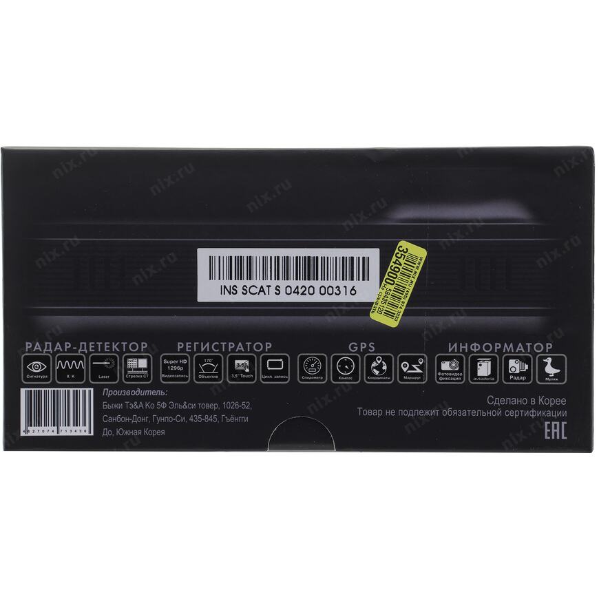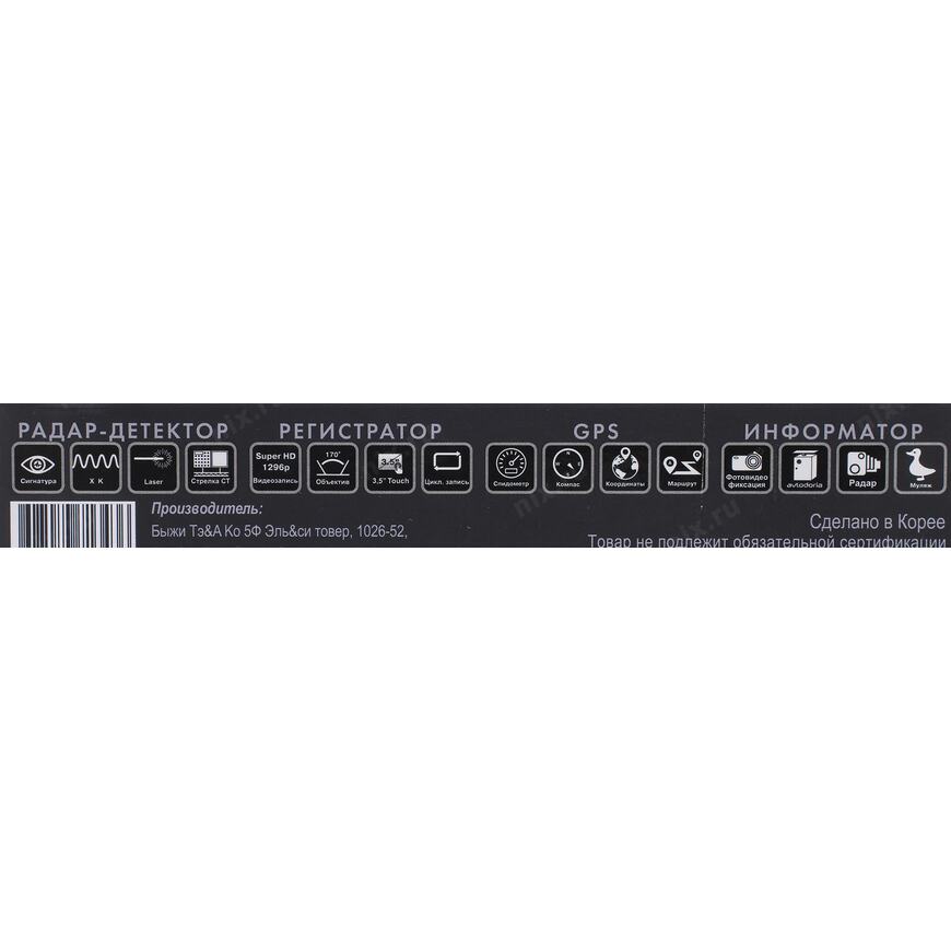 | Прочее | Процессор Ambarella A12A35 Встроенный высокочувствительный сигнатурный радар-детектор Режимы работы радар-детектора: Город1/ Город2/Город3/Трасса/IQ. Рабочие диапазоны: СТ K-диапазон (Радис, Визир, Арена, Места, Мультарадар, Кордон, Крис-П): 24025 - 24275 МГц; Детектор лазерного излучения (Poliscan, TruCam, UltraLite, Лисд-2, Амата): 800 ~ 1000 нм; Определяет радары типа "Робот". GPS-информатор: оповещение о стационарных камерах видеофиксации и муляжах камер |