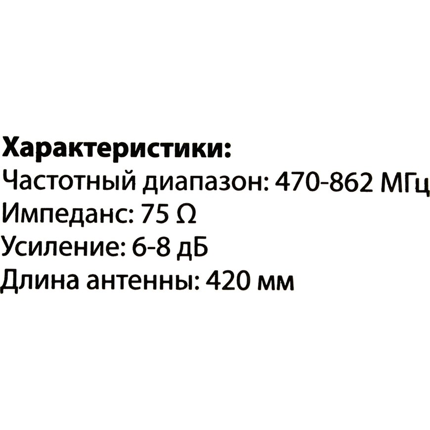 | Описание | TV - антенна с усилением 6-8 дБ |
