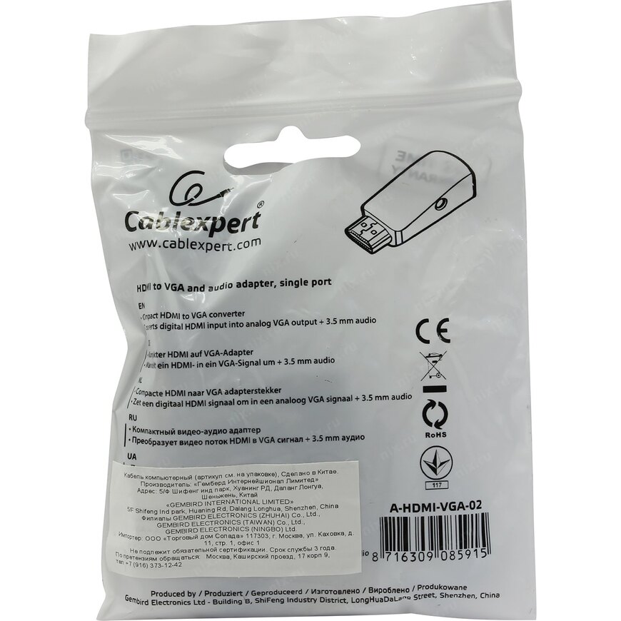 | Разъемы кабеля или переходника | HDMI 19M, VGA "мама", миниджек 3.5 мм "мама" (female, F) |